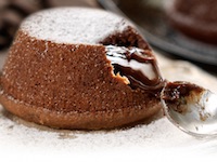 Пирожное из темного шоколада «BarryCallebaut» (Южная Америка) с жидким шоколадом внутри.