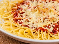 Фирменный томатный соус, пармезан, сыр моцарелла, пенне или спагетти из твердых сортов пшеницы (на выбор).