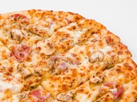 Излюбленное сочетание фирменного сливочно-чесночного соуса, сыра моцарелла, свежих шампиньонов и ветчины.
