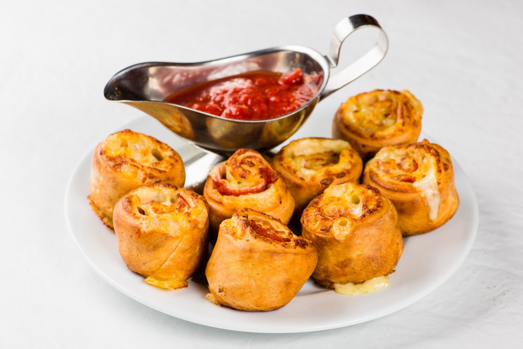 Сырные палочки (14 шт.), сервируют фирменным томатным соусом.